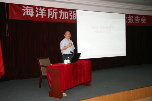 5月21日,為進(jìn)一步加強(qiáng)反腐倡廉建設(shè),規(guī)范各類人員職務(wù)行為,中國科學(xué)院海洋研究所舉行“反腐倡廉建設(shè)專題報告會”,特邀中國科學(xué)院監(jiān)察審計局副局長郭建軍作了題為“加強(qiáng)反腐倡廉建設(shè),預(yù)防職務(wù)犯罪”的主題報告。全所副研究員以上人員,各類項目課題組長及相關(guān)人員,機(jī)關(guān)各部門全體人員等近200人參加了報告會。黨委書記啟堯主持了報告會。