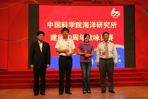 演出結(jié)束,所領(lǐng)導(dǎo)為獲獎(jiǎng)參賽隊(duì)頒發(fā)了獎(jiǎng)杯。全所13支演唱隊(duì)伍為這次高水平的合唱演出進(jìn)行了精心的準(zhǔn)備,在此,向每位演出者,向六十年來為海洋所奉獻(xiàn)著自己的職工致以深深的敬意,也祝愿我們海洋所的明天更加燦爛美好!