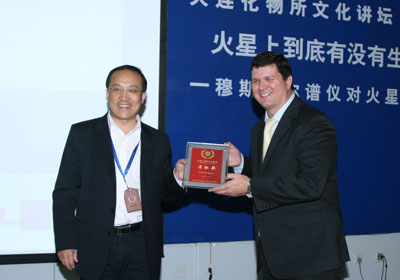 最后,張濤代表大連化物所向Paulo博士贈送了“大連化物所文化講壇貢獻獎”獎牌。