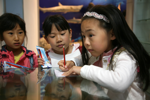 在學術報告廳,小朋友們和家長一起聆聽了“南極和北極科學考察”專題科普講座,并與科研人員進行可面對面的交流互動;在童第周、曾呈奎紀念展室,兩位老科學家前曾用過的物品按照他們生前的生活習慣整齊的擺放著,他們艱苦樸素的生活作風、為科學奮斗終身的奉獻精神讓前來參觀的市民感動不已;水族樓海洋科普展廳,鯨魚骨架、海獅、企鵝、翻車魚等珍稀動物標本,最受小朋友們的喜愛。