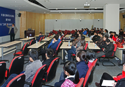 杜輝旁征博引,語言幽默詼諧,從古樸厚重的古城西安,講到博大正統的北京城,再到奢華精致的大上海,通過對比,杜輝提出了大連與眾不同的城市文化特色——明快而務實。而后,他又從“三緣”即業緣、史緣、地緣三個方面及大連“三民”文化,即殖民、移民、漁民,對大連的文化產業成就及問題進行了深刻地剖析。