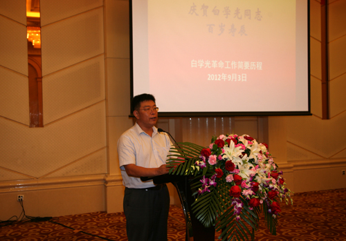 工會主席王斌貴宣讀了中科院沈陽分院、八大關辦事處等單位發來的賀信,黨委委員李超倫代表所黨委向白書記贈送了壽禮和壽金,青年黨員代表向白書記敬獻了鮮花,離退辦主任王巖回顧了白老的革命和工作歷程。