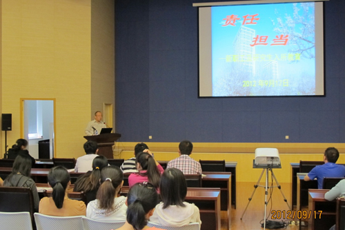 9月13日上午,駱永明副所長(主持工作)為新進人員做了第一場報告。他向大家介紹了研究所的基本情況與近期工作進展,并結合海岸帶研究的國際前沿講解了海岸科學的內涵和外延。9月17日上午,黨委書記兼副所長高玲瑜做了題為“責任與擔當”的講座。他首先回顧了研究所的建所歷程,隨后又對世情、國情、院情、所情作了簡要介紹,然后從如何做人、如何做事、團隊精神、科研道德等方面為大家提出了幾點要求。綜合辦公室王德強主任以自己多年從事人事工作的經驗積累,為大家做了一場如何規劃自己的職業生涯的報告,使新入所的員工和學生受益匪淺。國家科學圖書館蘭州分館陳松叢老師也應邀來所做了關于專利檢索與文獻管理軟件方面的報告。此外,綜合辦公室、財務處、分析測試中心、科技處、人事教育處等部門有關人員也相繼介紹了本部門相關的規章制度和辦事流程。
