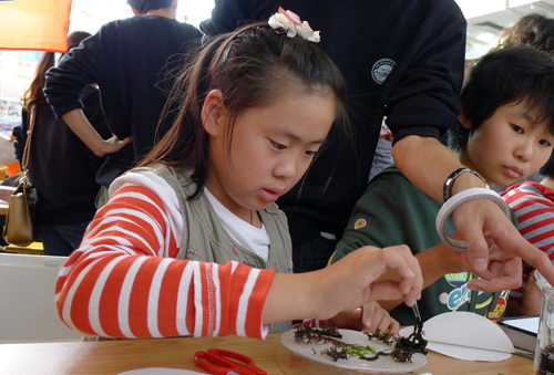 最吸引同學(xué)們的還是可以親自動(dòng)手參與的海洋科學(xué)小實(shí)驗(yàn),全市中小學(xué)生通過在志愿者的指導(dǎo)下,親手制作海洋植物標(biāo)本、開展海中撈鹽小實(shí)驗(yàn)、通過電子顯微鏡觀察活體纖毛蟲和有孔蟲標(biāo)本片等,親身體驗(yàn)海洋科技的奧秘。在志愿者的耐心講解下,同學(xué)們了解了許多日常生活中常見的海洋科學(xué)知識(shí),并激發(fā)了同學(xué)們熱愛科學(xué)、關(guān)注海洋的熱情。