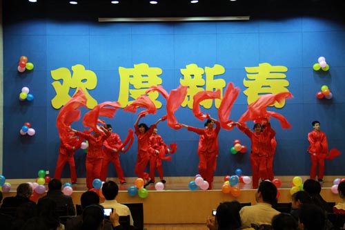 金龍騰飛、銀蛇起舞,2013年2月1日下午,海岸帶所黨政班子成員、全體職工和研究生齊聚一堂,唱響和舞動(dòng)蛇年新春。