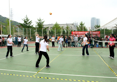 下午四點整,機關-十九室女隊和十一室女隊首先進行女排冠軍的角逐,機關-十九室女隊高超的實力、十一室穩健的防守都令人印象深刻。隨后,男排決賽在五室男隊和十五室男隊之間進行,兇猛的扣殺、驚險的救球令人目不暇接,觀眾們叫好連連。
