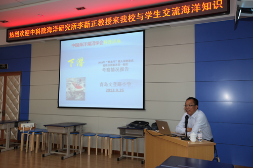 9月25日,中科院海洋所洋生物分類學(xué)專家李新正研究員到青島文登路小學(xué)開(kāi)展科普講座,和同學(xué)們分享了搭乘蛟龍?zhí)栞d人深潛器參加“蛟龍海山”區(qū)首次科學(xué)下潛的親身經(jīng)歷。中國(guó)海洋湖沼學(xué)會(huì)、海洋所團(tuán)委負(fù)責(zé)同志參加了活動(dòng)。