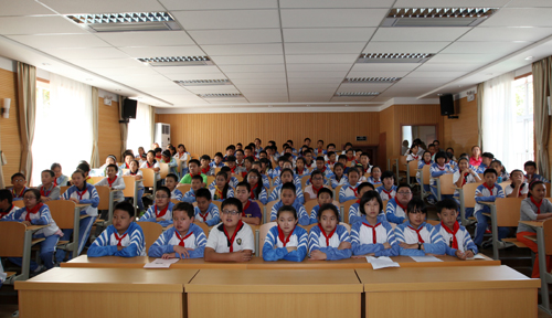 李新正研究員生動(dòng)的向同學(xué)們展示了考察拍攝到的罕見(jiàn)深海生物珍貴照片和視頻,以及考察隊(duì)首次在南海冷泉區(qū)發(fā)現(xiàn)了錳結(jié)核的經(jīng)歷,白色的螃蟹、會(huì)游泳的海參、像雪蓮一樣美麗的海綿、像柳樹(shù)一樣婀娜的珊瑚……,隨著幻燈片的切換,同學(xué)們目不轉(zhuǎn)睛,不時(shí)爆發(fā)出一陣陣驚呼。李新正研究員拿出一個(gè)透明塑料袋裝著的白色物體讓同學(xué)們傳看,大家競(jìng)相猜測(cè)到底是什么奇怪的海洋生物,當(dāng)謎底揭開(kāi)的時(shí)候,全體嘩然,竟然是在3000米海底承壓變形的泡沫箱蓋子,隨著李新正研究員的講解,同學(xué)們恍然大悟,原來(lái)深海的壓強(qiáng)竟然如此之大。在互動(dòng)環(huán)節(jié)中,同學(xué)們爭(zhēng)相提問(wèn),海參為什么會(huì)融化、白色螃蟹身上的毛是怎么長(zhǎng)出來(lái)的、鼠尾魚(yú)的尾巴為什么那么長(zhǎng)……,千奇百怪的問(wèn)題展現(xiàn)出孩子們心中對(duì)神秘海洋世界的好奇與憧憬。