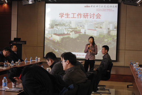 劉敏主任代表研究生部報告了金屬所研究生工作情況。報告中對近年來研究生工作出現的新情況、新變化、面臨的新問題作了詳細的說明,同時也向大家報告了金屬所研究生工作的思路及做法,并將剛剛起草的《研究生輔導員班主任工作管理辦法》提交會議討論。