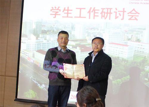 會上,張哲峰副所長為新聘輔導員劉冬、雷浩老師頒發了聘書。