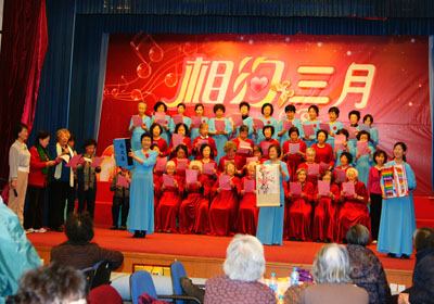 火熱的開場(chǎng)舞《好運(yùn)來》為聯(lián)歡活動(dòng)剪了頭彩,獨(dú)唱《愛在天地間》、《草原夜色美》傳遞了大愛與唯美,舞蹈《我在春天等你》用動(dòng)人舞姿牽引著觀眾沉醉在春天的味道中;在職女職工獻(xiàn)上舞蹈《茉莉花》,表達(dá)了她們對(duì)老同志的關(guān)愛。活動(dòng)中,穿插了動(dòng)作類游戲《擊鼓傳花》,獲獎(jiǎng)的14位老同志到臺(tái)上即興集體演唱了《幸福拍手歌》,情感類游戲《時(shí)間都去哪兒了》,展示了16位女同志20至30歲年輕時(shí)的黑白老照片,大家在《猜猜她是誰(shuí)》中,感受年華易去,珍惜當(dāng)下生活。最后,在民樂隊(duì)的伴奏下,50位老同志朗誦了《老有老的驕傲》,表演歌伴舞《兒行千里》,把聯(lián)歡會(huì)推向高潮,聯(lián)歡會(huì)在全場(chǎng)合唱《夕陽(yáng)紅》中結(jié)束。