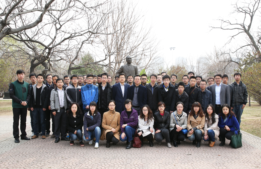 活動過程中,與會新職工和研究生代表在蔣新松塑像前整齊列隊,敬獻鮮花并默哀,以寄托對蔣新松的哀思和崇敬之情。(黨辦)