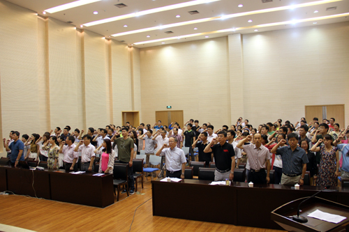 首先,在秦偉研究員的帶領下,預備黨員面對黨旗進行了入黨宣誓、全體黨員重溫了入黨誓詞;隨后,黨委書記高玲瑜做了講話,他指出:今天的活動一是慶祝中國共產黨成立94周年,共同回顧我們黨走過的94周年光輝歷程;二是進行“三嚴三實”專題教育活動,加強領導干部作風建設;三是加強黨的基層黨組織建設,對全體黨員進行黨的知識培訓。他和黨員們一起回顧了94年來黨的發展歷程,并結合近期開展的“三嚴三實”專題教育活動,對黨員和領導干部們提出了要求和希望:一要嚴格要求自己,成為對黨忠誠、個人干凈、敢于擔當的人;二要加強學習教育,嚴肅黨內政治生活,統一思想;三要充分發揮領導干部的表率作用;四要充分發揮黨員先鋒模范作用和各支部的戰斗堡壘作用。進一步增強我所科技創新的推動力和競爭力,形成優良作風,推動院“率先行動”計劃,推動研究所的創新發展。