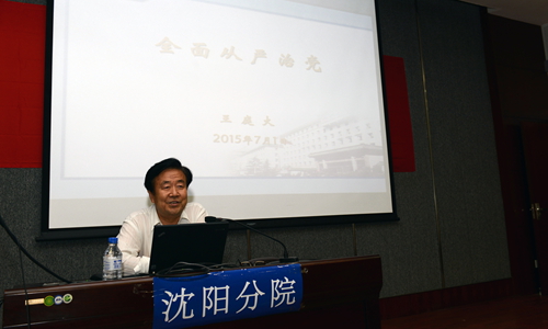 王啟堯在總結中高度評價了王庭大同志的黨課報告,報告對沈陽分院系統各單位深入開展“三嚴三實”專題教育具有重大指導意義。同時,王啟堯代表沈陽分院黨組要求沈陽分院系統各單位黨委、全體黨員和干部要深刻學習領會王庭大同志黨課報告的實質和內涵,扎實推進本單位“三嚴三實”專題教育工作,堅持邊學邊查邊改,突出問題導向,推動踐行“三嚴三實”要求制度化、常態化、長效化,為本單位“一三五”規劃、“率先行動”計劃的順利開展做出新的更大貢獻。