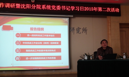 在會議上,中國科學院黨組成員、副秘書長、院黨建工作領導小組副組長何巖作了題為“開闊胸懷 凝心聚力 活用法寶-扎實做好新形勢下的統(tǒng)戰(zhàn)工作”的輔導報告。他從統(tǒng)一戰(zhàn)線和統(tǒng)戰(zhàn)工作基本知識、中央統(tǒng)戰(zhàn)工作會議和《條例》精神解讀、我院統(tǒng)戰(zhàn)工作的基本情況和特點、以及進一步加強我院統(tǒng)戰(zhàn)工作的思路四個方面,全面系統(tǒng)闡述了當前形勢下統(tǒng)戰(zhàn)工作的意義、思路和方法,最后對各單位黨委書記開展好統(tǒng)戰(zhàn)工作提出了工作要求。王啟堯強調各單位黨委理論中心組要加強《條例》的研究和學習,針對本單位的實際情況,對照何巖副秘書長的報告要求尋找差距,并根據(jù)工作部署抓好落實。