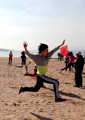 隨著比賽開始,沙灘上熱鬧非凡,選手精神抖擻奮力拼搏,觀眾熱情加油吶喊助威。60米托球跑要求速度與技巧相結合,二人三足更加注重團隊的默契程度,鉛球、立定跳遠、跳繩等傳統項目競爭激烈。最吸引人的還是團體項目60米接力比賽,在助威吶喊聲中,運動員們你追我趕,十分激烈,將本屆沙灘運動會的氛圍推向高潮。