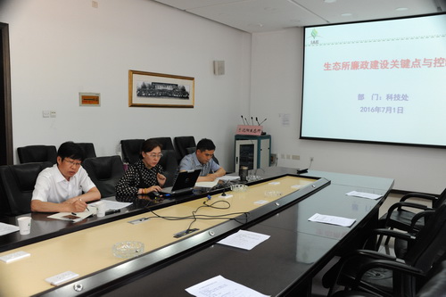 為貫徹落實沈陽生態所2016年黨風廉政及紀監審工作規劃,督查推進《沈陽生態所貫徹落實中央〈建立健全懲治和預防腐敗體系2013-2017年工作規劃〉的實施細則》,沈陽生態所紀委于7月1日下午召開廉潔從業風險防控工作進展專題研討會。沈陽生態所副所長、黨委副書記、紀委書記郭秀銀出席會議并講話,沈陽生態所紀委委員、管理部門負責人參加會議。會議由沈陽生態所紀委副書記、辦公室主任胡志斌主持。