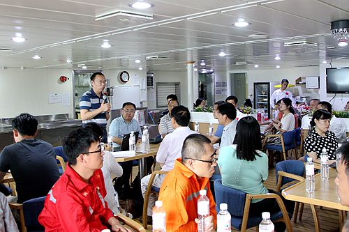 活動結束后,黨員們結合各自從事的專業工作參觀了“科學”號考察船的船載實驗室。