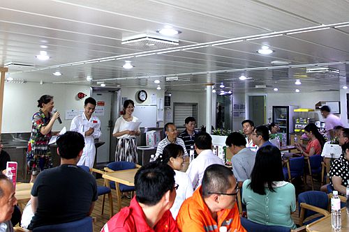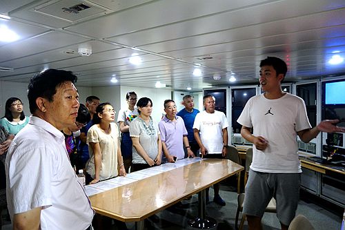 黨課后,“科學”號黨小組長孟慶超同志向大家介紹了本次出海期間黨小組“兩學一做”學習教育開展的特色工作,觀看了出海期間全體船隊員劈風斬浪、挑戰海況、安全作業的相關視頻,大家對海上考察期間這種團結協作、以船為家、勇創佳績的精神深深嘆服和感動。三個黨支部聯合開展了“兩學一做”知識競賽,競賽試題內容摘自《黨章》、《準則》、《條例》以及習總書記系列講話等,主持人讀完題目后,在座的黨員紛紛舉手搶答,現場氣氛熱烈活躍,反應快、答題準,展現了學有所獲、學有所用的風采,彰顯了黨員們積極向上、銳意進取的精神風貌。通過本次知識競賽,督促黨員進一步系統學習黨規黨紀和踐行使命宗旨,將學習教育內化于心,外化于行,再次增強了政治意識、大局意識、核心意識和看齊意識。
