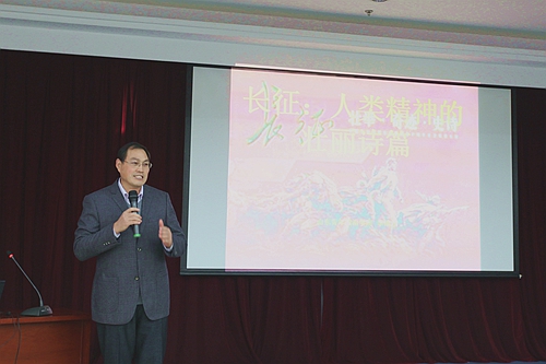 李維才博士對十八屆六中全會有關精神進行了深刻解讀。他指出,十八屆六中全會聚焦全面從嚴治黨,既是社會發展的現實需要,也是黨建理論發展的理論需要,我們要繼承和弘揚長征精神,顧全大局,嚴守紀律,緊密團結,實事求是,走好新時期自己的長征路,共同推進中國特色社會主義偉大事業;他強調,長征精神集中體現了黨和紅軍的優良傳統和作風,是中國共產黨人世界觀、人生觀和價值觀的全面展示,更是我們構建社會主義和諧社會的強大精神動力,在當今全面建成小康社會的決勝階段,我們更加需要長征精神,這是時代的呼喚。李博士對長征的整個歷史進程進行了全面介紹,全面回顧重溫了那段可歌可泣的英雄歲月,系統剖析了長征勝利的原因,闡釋了長征精神留給我們的深刻啟示。