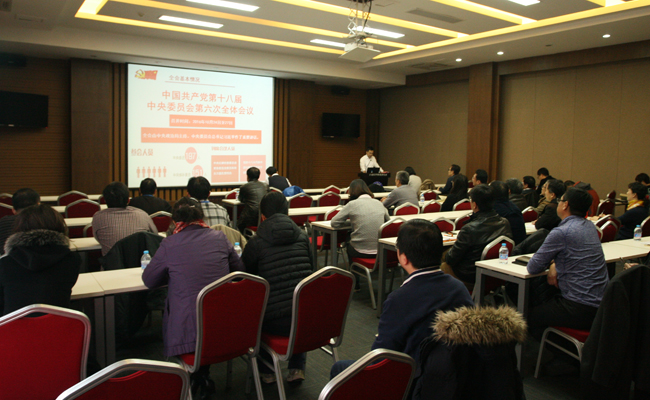 會上,黨委書記王華作《學習宣傳貫徹黨的十八屆六中全會精神》報告,報告以全會公報的十二個“關鍵詞”為線索,介紹了黨中央“四個全面”的戰略布局與十八屆歷次全會的關系、全會提出以習近平同志為核心的黨中央的重大意義、關于新形勢下黨內政治生活的若干準則原文、中國共產黨黨內監督條例原文、以及貫徹黨內民主、貫徹群眾路線等內容。
