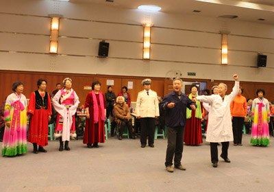在夕陽紅小樂隊的現場伴奏下,活動在歌伴舞《相逢是首歌》中拉開了序幕。離退休的男同志們也積極來到會場為活動助興,男聲四重唱《鴻雁》、男聲獨唱《青藏高原》、《二月里來》贏得大家的熱烈掌聲;女聲獨唱《我們的中國夢》,在優美的歌聲中,唱響中國夢,表達愛國心;獨舞《美人吟》、《九兒》溫婉優雅,讓觀眾們大飽眼福;男女聲組合唱《香巴拉并不遙遠》悠揚而歡快,表達了對美好生活的向往;朗誦《放飛中國夢》,感情真摯,激情飛揚,充滿了感染力,將聯歡會推向高潮;女聲小合唱《萬泉河水》,飽含著對祖國的無限深情,為聯歡活動畫上了圓滿的句號。