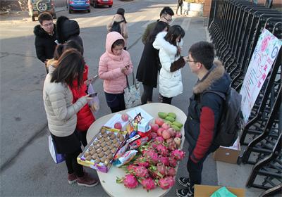 早晨7:30,活動在所正門前拉開帷幕。本次活動主要分為兩個環(huán)節(jié),首先是參與活動的女生現(xiàn)場關注DICP研究生會微信公眾號并留言寫下自己的心愿,便可領取研究生會精心準備的愛心水果一份,200份“愛心”分批送出,送完為止;然后是在留言的女生中隨機抽取10名幸運女生送出豐厚的幸運大禮包,并將留言女生的心愿在微信公眾號中進行推送,等待著有心的“他”來實現(xiàn)。
