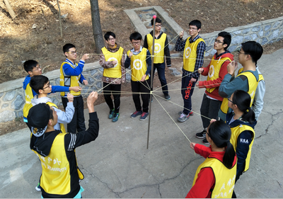 在拓展活動之前,教官向大家介紹了活動的主要目的是“磨練意志、陶冶情操、完善人格、熔煉團隊”。隨后,大家分為兩組并推選了團隊負責(zé)人,進行了隊伍的初期組建。經(jīng)過教練對活動規(guī)則的講解和示范后,兩組隊員分別進入場地進行“有氧登山”、“步步高”及“權(quán)杖”等活動,并分享了活動過程中的經(jīng)驗和想法。