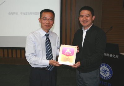 蔡睿代表大連化物所向劉云龍頒發了“大連化物所文化講壇貢獻獎”獎牌。