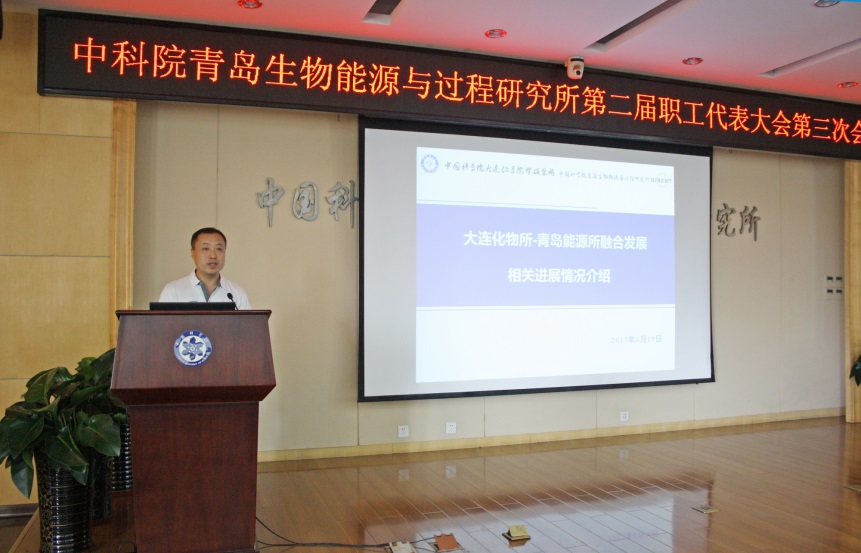 6月19日,青島能源所組織召開了第二屆職工代表大會第三次全體會議,會議審議通過了黨委書記彭輝代表所領導班子作的《中國科學院青島生物能源與過程研究所領導班子任期目標(2017.3-2022.3)》。彭輝在報告中指出,要貫徹落實院黨組的重大決策部署,以兩所融合發展共建創新研究院為抓手,進一步優化科技布局,全面完成 “一三五”規劃目標,全面提升研究所的科技創新實力、服務經濟社會發展的能力和國際影響力,實現研究所的創新跨越發展,力爭在若干重點領域,將研究所建成世界一流的研究機構。