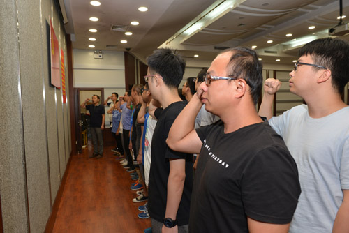 報告會后,金屬所舉行了新黨員入黨宣誓儀式。27名新黨員面向黨旗莊嚴宣誓。老黨員也與新黨員一起重溫了入黨誓詞,回顧了入黨宣誓時的莊嚴承諾和堅定決心,進一步增強了責任感和使命感。