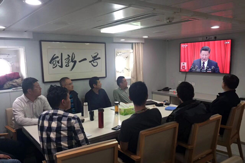 此外,正在渤海海域作業(yè)的我所“創(chuàng)新一”科考船上的臨時黨小組,也組織黨員收看了十九大開幕會直播。