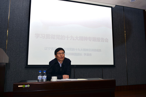 11月17日下午,金屬所舉辦學習貫徹黨的十九大精神專題報告會,邀請遼寧省委學習貫徹黨的十九大精神宣講團成員、遼寧省委講師團團長李滿春作了題為“深入學習貫徹黨的十九大精神,不忘初心 牢記使命 永遠奮斗”專題報告。所領導,黨委委員,紀委委員,副處級以上領導干部,民主黨派、無黨派人士代表,職工、研究生黨員300余人參加了會議。會議由黨辦主任黃糧主持。
