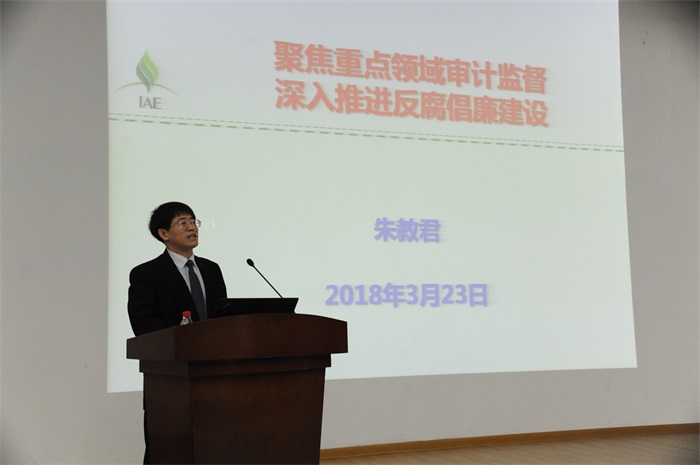 副所長(主持工作)朱教君以“聚焦重點領域審計監督,深入推進反腐倡廉建設”為題作反腐倡廉報告。在闡述新時代反腐倡廉建設形勢與要求時,他指出,十九大報告強調全面從嚴治黨永遠在路上,要奪取反腐敗斗爭壓倒性勝利,強化不敢腐的震懾,扎牢不能腐的籠子、增強不想腐的自覺;十九屆中央紀委二次全會提出要開創全面從嚴治黨新局面,全面加強紀律建設,持之以恒抓好作風建設,讓巡視利劍作用更加彰顯。報告后,朱教君通報了研究所科研項目經費管理等重點領域的審計情況,對存在問題進行了梳理和分析,并提出應對措施;報告了立足崗位、推進反腐倡廉工作的措施,包括加強科研團隊的審計責任和意識,加強管理部門的責任和擔當,加強紀監審工作力度,加強風險防控體系建設等方面;強調科研骨干、中層干部要認真落實“兩個責任”,履行“一崗雙責”,圍繞研究所“一三五”規劃,扎實做好反腐倡廉建設工作,努力營造和維護風清氣正的科研創新環境,保障研究所科技創新工作。