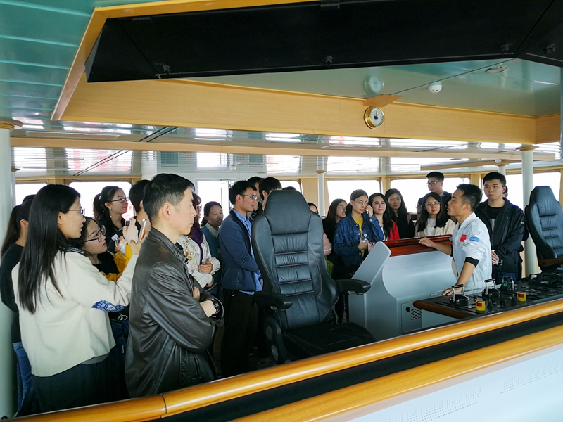 船長劉合義及二副孟慶超介紹了“科學”號科考船的概況并帶領大家參觀了駕駛室、科研及生活設施,播放了“發現”號ROV水下作業視頻及照片。團委副書記王家棟帶領調研團參觀了中科院海洋生物標本館科普展覽室。