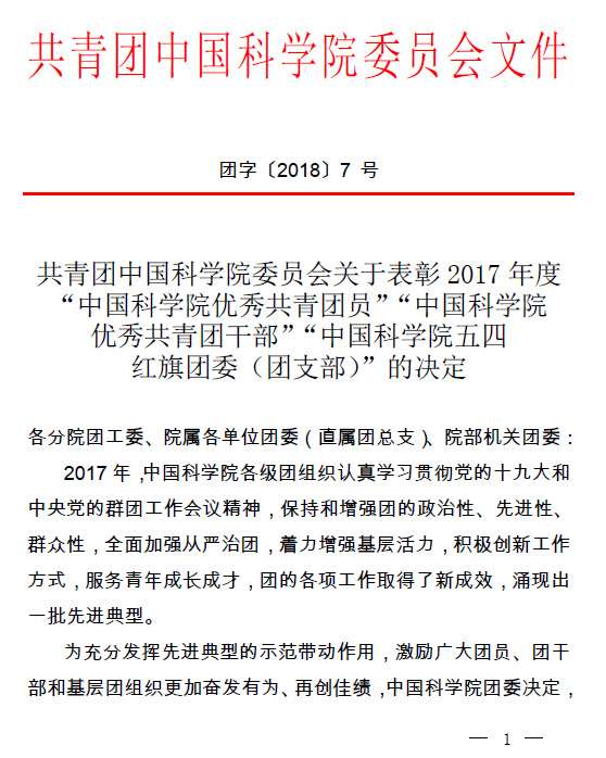 為深入學習貫徹黨的十九大和共青團十七屆七中全會精神,充分發揮先進典型的示范帶動作用,調動基層團組織的積極性、主動性和創造性,中國科學院團委在“五四”期間開展了2017年度“兩紅兩優”評選表彰活動。海洋研究所團委副書記王家棟獲“中國科學院優秀共青團干部”榮譽稱號,博士研究生宋浩獲“中國科學院優秀共青團員”榮譽稱號,全院共有48名團干部及97名團員獲得表彰。