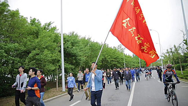 在金屬所旗幟的引領下,在熱烈而溫馨的氣氛中,浩浩蕩蕩的隊伍宛如一條長龍,蜿蜒盤繞在美麗的沈水河畔。在金戈鐵馬的秦開塑像前和北門轉盤處,大家自發聚集在金屬所旗幟下合影留念。五公里的健步走活動,大家有說有笑,談一談工作,聊一聊生活,在歡樂的氣氛里增強了交流、增進了感情。