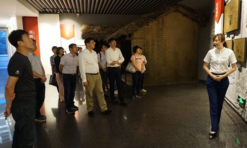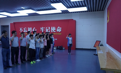 在雷鋒紀念館內全體黨員莊嚴重溫入黨誓詞。
