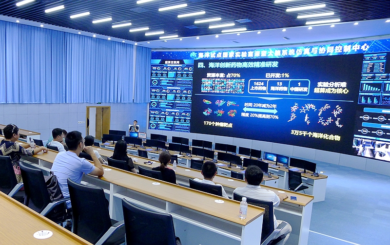 在專業講解人員的引導下,支部黨員參觀了海洋試點國家實驗室的科考船共享平臺、創新成果展廳、“透明海洋”觀測系統、深藍大腦系統仿真與協同控制中心及海洋高端儀器設備研發平臺。