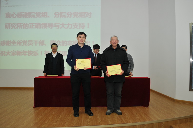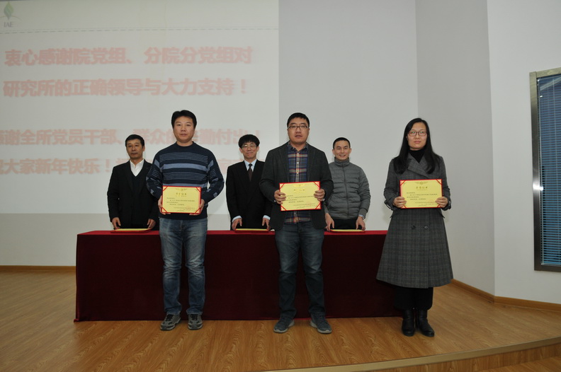 隨后,所黨委舉行“兩先兩優(yōu)”表彰儀式。班子成員向2018年度先進(jìn)黨支部、先進(jìn)黨小組、優(yōu)秀黨務(wù)工作者、優(yōu)秀黨員、優(yōu)秀團(tuán)干部和優(yōu)秀團(tuán)員頒發(fā)了獎(jiǎng)狀和榮譽(yù)證書。所黨委希望受表彰的先進(jìn)集體和優(yōu)秀個(gè)人要珍惜榮譽(yù),再接再厲,在各自崗位上繼續(xù)發(fā)揮先鋒模范作用,努力在今后的工作中做出更加優(yōu)異的成績(jī)。所黨委號(hào)召全所各級(jí)黨組織和廣大黨員要認(rèn)真向他們學(xué)習(xí),牢記黨的宗旨,履行黨員義務(wù),開拓進(jìn)取,扎實(shí)工作,以更加飽滿的激情,更加務(wù)實(shí)的作風(fēng),在研究所改革、創(chuàng)新、發(fā)展中作一流貢獻(xiàn),創(chuàng)一流成績(jī)。