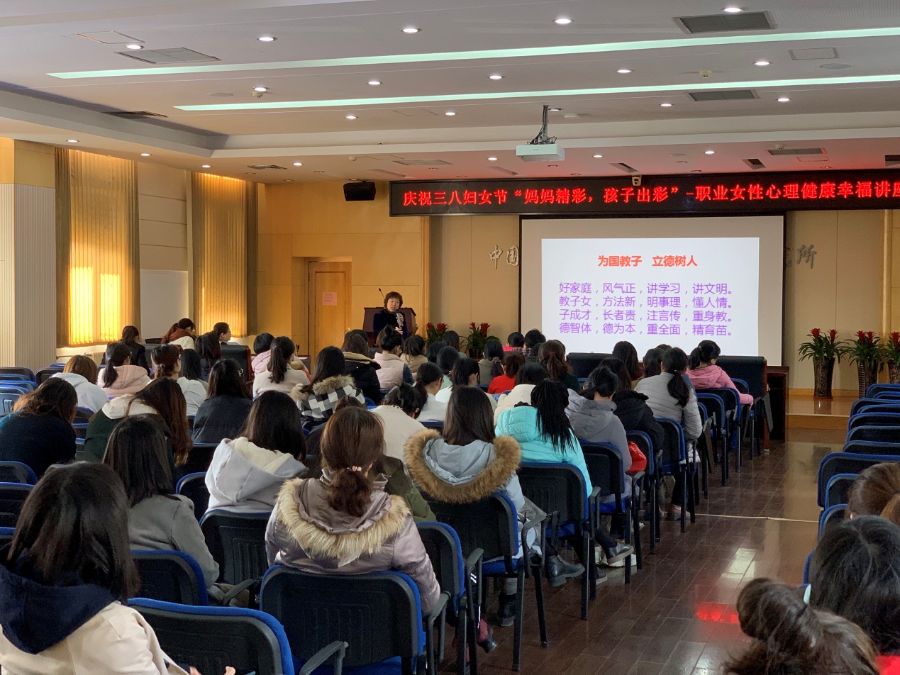 為了活躍研究所文化氛圍,迎接國際婦女節以及引導廣大女性更多的關注自身的道德修養,促進綜合素質的提升,緩解女職工的工作壓力,研究所辦公室、工會及婦委會圍繞“媽媽精彩,孩子出彩”為主題,組織研究所女職工心理健康幸福講座。