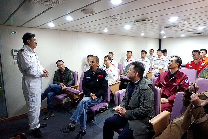 畢偉副書記宣讀了《中共中國科學(xué)院海洋研究所委員會關(guān)于成立“科學(xué)”輪1901航次“海上堡壘”臨時黨支部的決定》,李雷溪同志任航次臨時黨支部書記,航次首席科學(xué)家宋永東任組織委員兼紀(jì)律委員,“科學(xué)”號輪機(jī)長姜良優(yōu)任宣傳委員兼統(tǒng)戰(zhàn)委員。