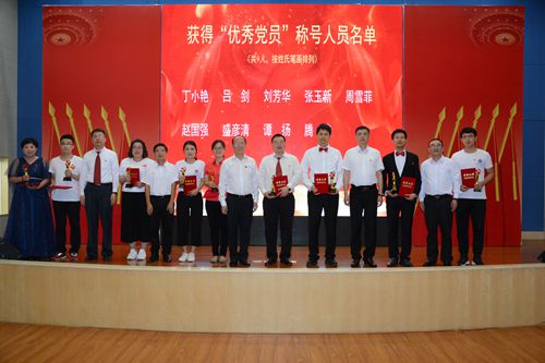 黨委委員為優秀共產黨員頒發證書和獎杯