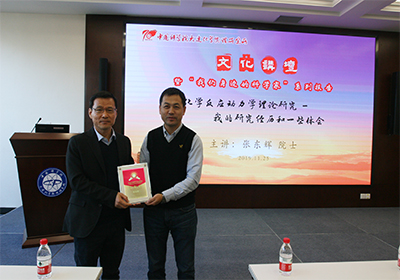 11月25日上午,大連化物所分子反應動力學國家重點實驗室主任張東輝院士做客文化講壇第165講暨“我們身邊的科學家”系列報告會第4期,在交流中心第四會議室做了題為“化學反應動力學理論研究——我的研究經(jīng)歷和一些體會”主題報告。作為黨委理論學習中心組的學習內(nèi)容,在連所領導參加了報告會。黨委書記王華向張東輝贈送了“大連化物所文化講壇貢獻獎”獎牌,會議由黨委副書記毛志遠主持。