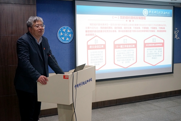 在報告中,于海斌從“新時代黨的組織路線”、“貫徹落實新時代黨的組織路線”和“新時代黨組織和黨員干部的擔(dān)當”三個方面系統(tǒng)闡述了新時代黨的組織路線的重大意義和深刻內(nèi)涵,并對各級黨組織和黨員干部貫徹落實好新時代黨的組織路線提出了工作要求,同時結(jié)合習(xí)近平總書記在科學(xué)家座談會上的講話精神,以及白春禮院長在國新辦發(fā)布會上的講話精神,對科技干部隊伍貫徹落實好新時代黨的組織路線指明了方向。最后,于海斌要求全體黨員干部要牢固樹立“四個意識”,保證學(xué)習(xí)貫徹工作落實到位,要把學(xué)習(xí)貫徹工作體現(xiàn)在具體的工作成效之中,為研究所四類機構(gòu)改革和中科院“率先行動”計劃的開展不斷做出新的貢獻。