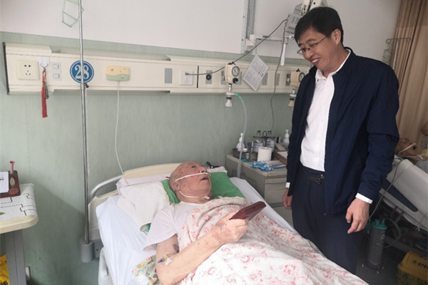 孫述誠同志今年已96歲,曾參加解放戰爭和抗美援朝戰爭。郭秀銀代表沈陽分院黨政領導班子,向孫述誠同志表達了崇高的敬意,感謝他曾經浴血奮戰保家衛國和為沈陽分院的發展所作出的貢獻,同時希望他保重身體,積極配合醫生治療疾病,并祝愿早日康復,幸福快樂。