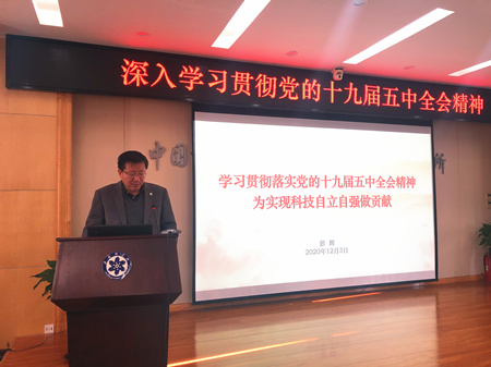 黨委書記彭輝為全體黨員做了題為《學(xué)習(xí)貫徹落實(shí)黨的十九屆五中全會(huì)精神,為科技自立自強(qiáng)做貢獻(xiàn)》的黨課報(bào)告,他從決勝全面建成小康社會(huì)取得的10方面決定性成就、到2035年基本實(shí)現(xiàn)社會(huì)主義現(xiàn)代化的9個(gè)遠(yuǎn)景目標(biāo)、“十四五”時(shí)期經(jīng)濟(jì)社會(huì)發(fā)展指導(dǎo)思想和必須遵循的原則、“十四五”時(shí)期經(jīng)濟(jì)社會(huì)發(fā)展的6個(gè)主要目標(biāo)、“十四五”時(shí)期工作的12方面具體舉措要求等方面詳細(xì)解讀了十九屆五中全會(huì)公報(bào),強(qiáng)調(diào)實(shí)現(xiàn)“十四五”規(guī)劃和2035年遠(yuǎn)景目標(biāo)必須堅(jiān)持黨的全面領(lǐng)導(dǎo),充分調(diào)動(dòng)一切積極因素,廣泛團(tuán)結(jié)一切可以團(tuán)結(jié)的力量,形成推動(dòng)發(fā)展的強(qiáng)大合力。還結(jié)合中科院和研究所實(shí)際,號(hào)召廣大黨員在全力推動(dòng)山東能源研究院建設(shè)工作中深入思考,在服務(wù)科技自立自強(qiáng)中找準(zhǔn)定位和努力方向。