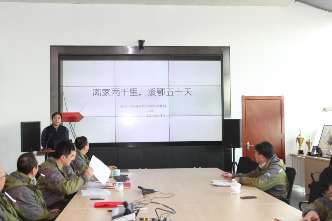 馮偉醫生結合自己的抗疫經歷作了題為《離家兩千里,援鄂五十天》的抗疫專題報告。2020年初,突如其來的新冠肺炎疫情牽動著全中國人民的心,黨中央迅速決策統一部署,全中國馳援武漢。馮偉自愿報名作為山東省第7批援鄂醫療隊隊員,義無反顧地踏上征程出征武漢。他說,“我們都知道前線是危險的,但作為抗疫白衣戰士,我們就是要到最危險的地方去,到最需要我們的地方去!”
