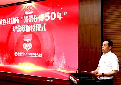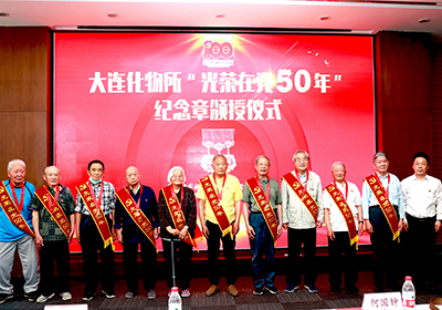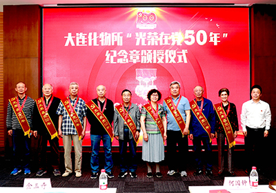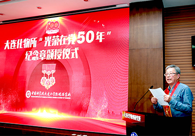 6月18日,中國科學院大連化學物理研究所隆重舉行“光榮在黨50年”紀念章頒授儀式。大連化物所院士何國鐘,老領導陳慶道、李文釗等50余名矢志不渝、飽經風霜的老黨員代表出席儀式,獲頒金燦燦的紀念章。所黨委書記金玉奇作總結講話,所黨委副書記、紀委書記毛志遠主持儀式。