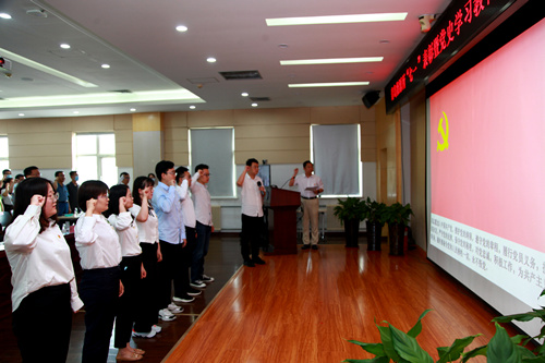 大會在雄壯的國歌聲中開幕。首先,在黨委書記彭輝同志帶領下,7名預備黨員面向黨旗進行了莊嚴的入黨宣誓儀式,其他黨員同志們重溫了入黨誓詞。